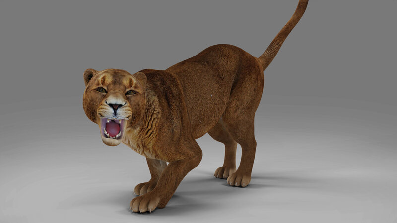 High quality realistic, rigged and Animated Lioness model