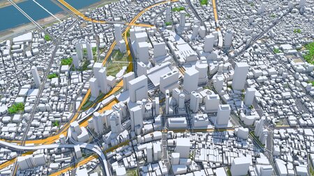 Accurate 3D city model and its surrounding area based on GIS data