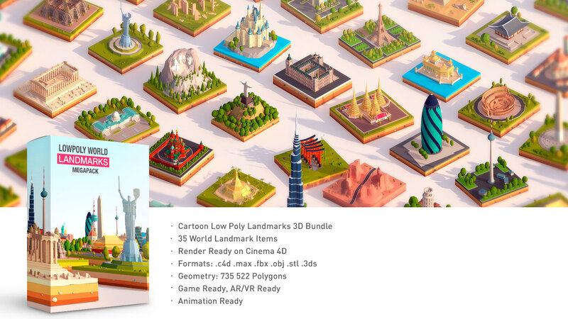 » Polygonia Cartoon Low Poly Landmarks Mega Pack Low-poly 3D model