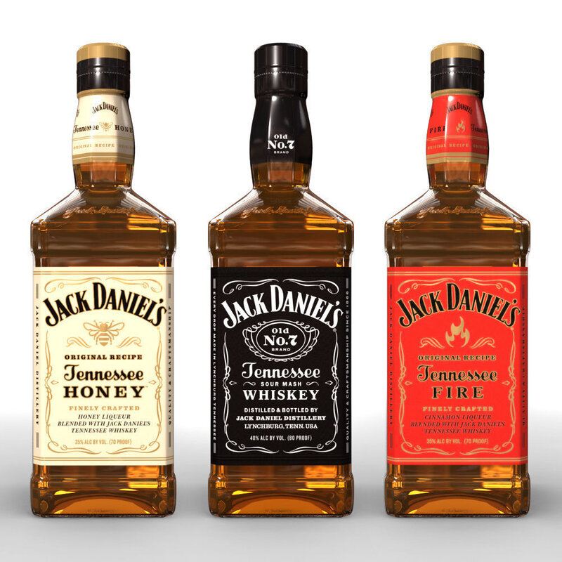 Jack Daniels, Jack Daniels Honey and Jack Daniels Fire 70cl bottles