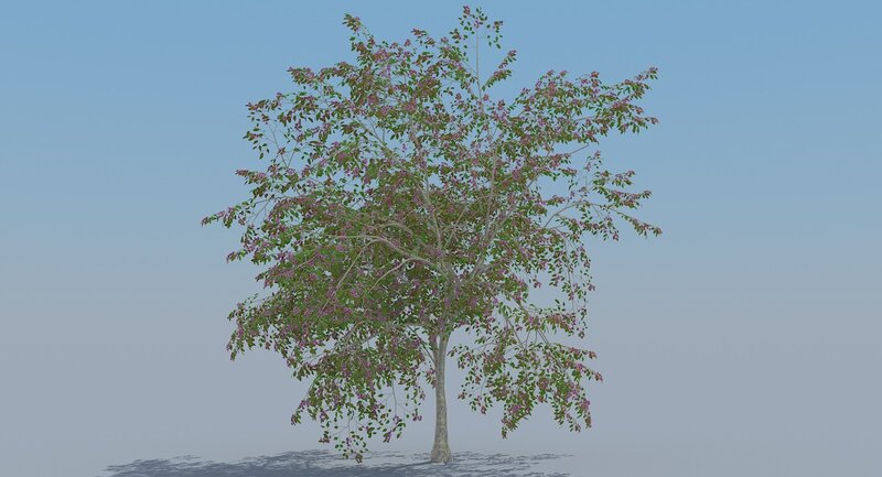 Here's realistic "Prunus serrulata" tree spring-time scene with turntable animation. There are several cameras, sunlight, 'stem' object and its 'flowers' and a simple plane for the matte-shadow.