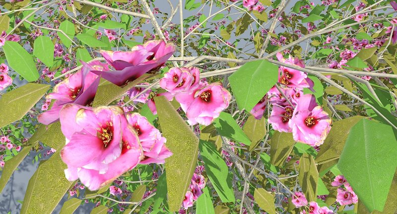 The product comes with seamless tree bark texture and "Chaenomeles Speciosa" flower texture map with alpha channel for opacity.