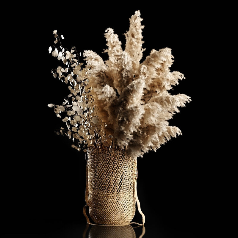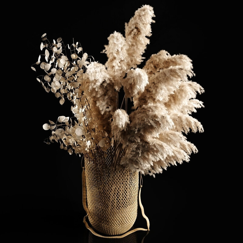 Wicker basket with pampas and lunaria branches