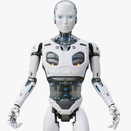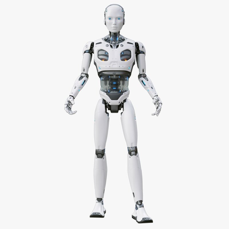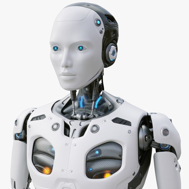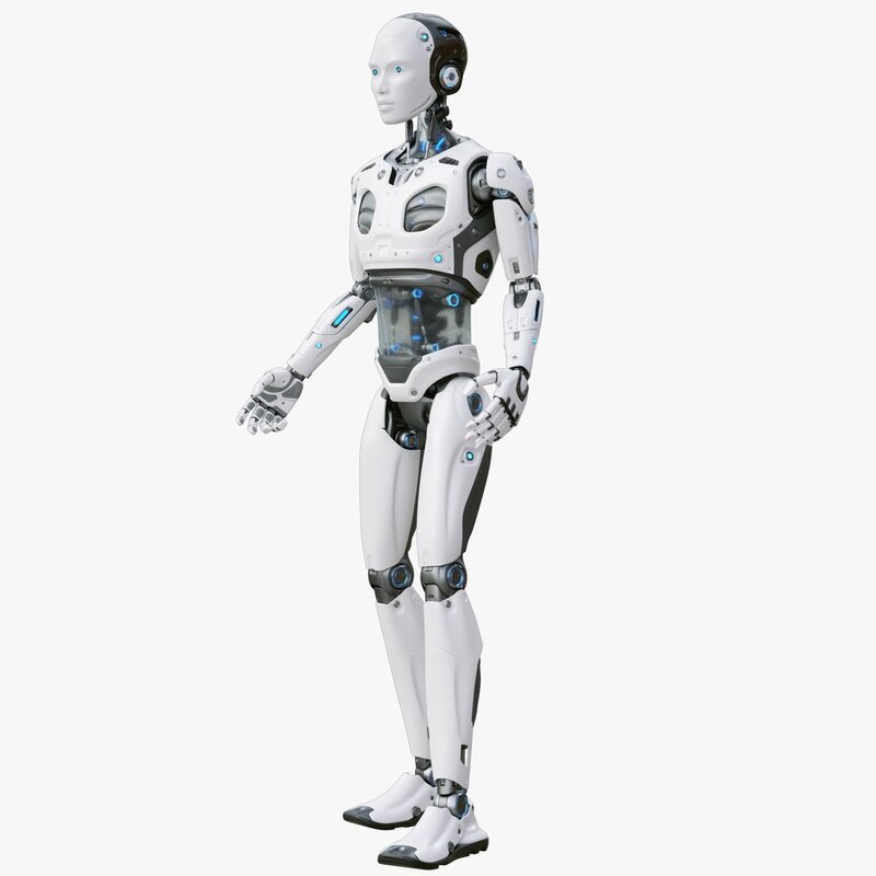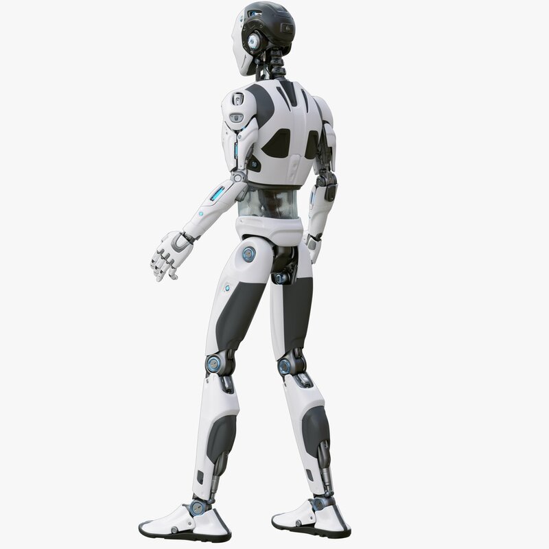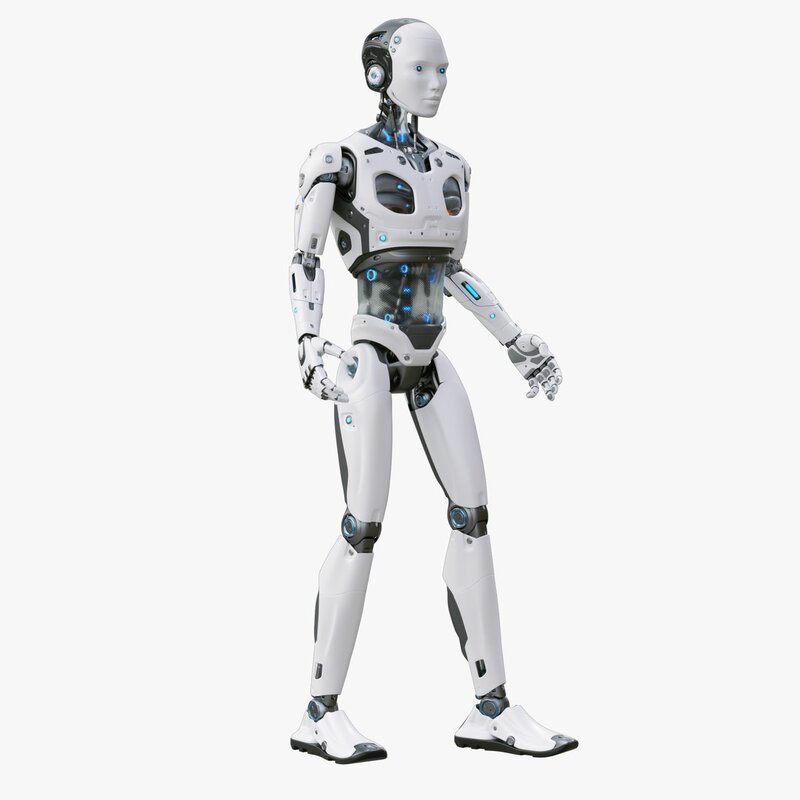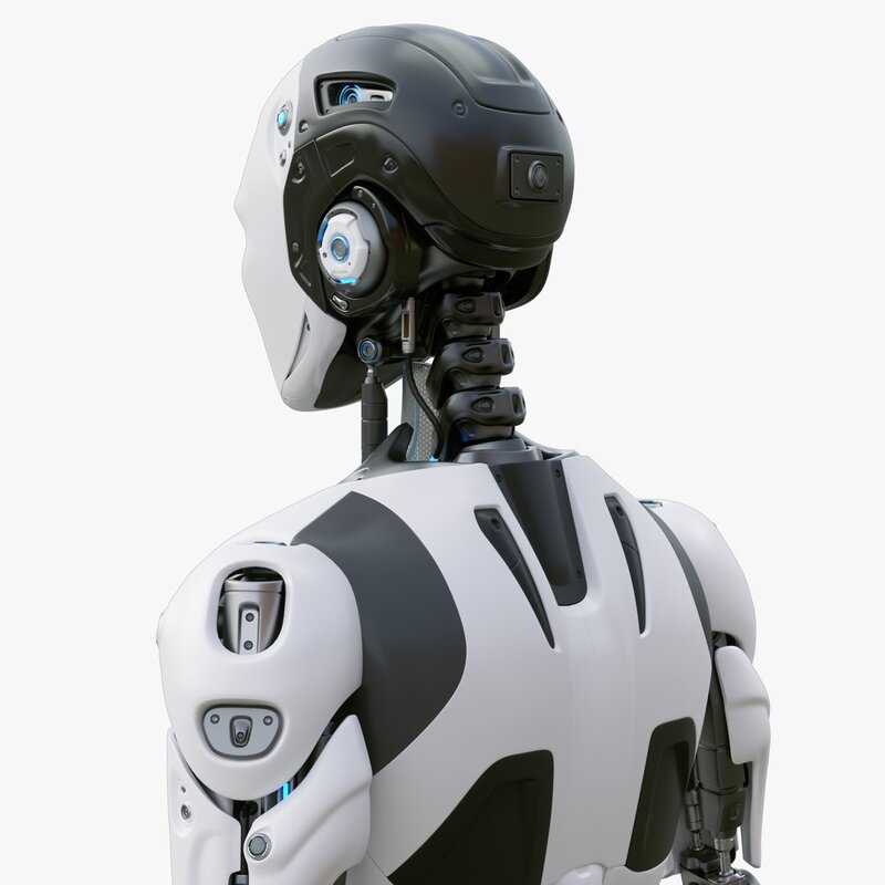 This is a finely detailed 3d model of a futuristic sci-fi male robot.